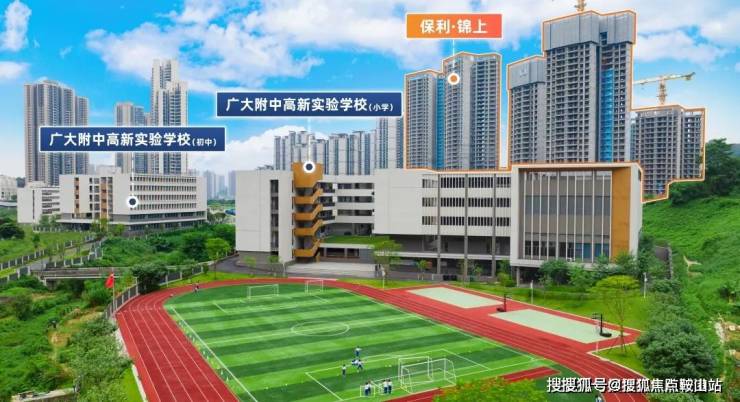 具体来看,项目自建12班幼儿园,与公立广大附中高新区实验学校直线距离约50米(数据来源: 百度地图测距,仅供参考),该校设有初中部和小学部。