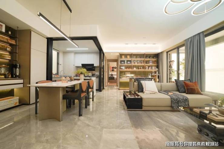 公区空间就更阔气了,餐客厅连接约6米超大阳台,空间感都已经扑面而来。
