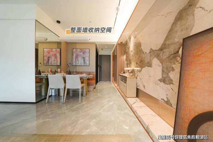 再来看看“亿点点”细节,项目入户设置玄关,还留有一整面墙的连贯空间可用于收纳,从设计之初就充分考虑到了如何提升空间利用率。