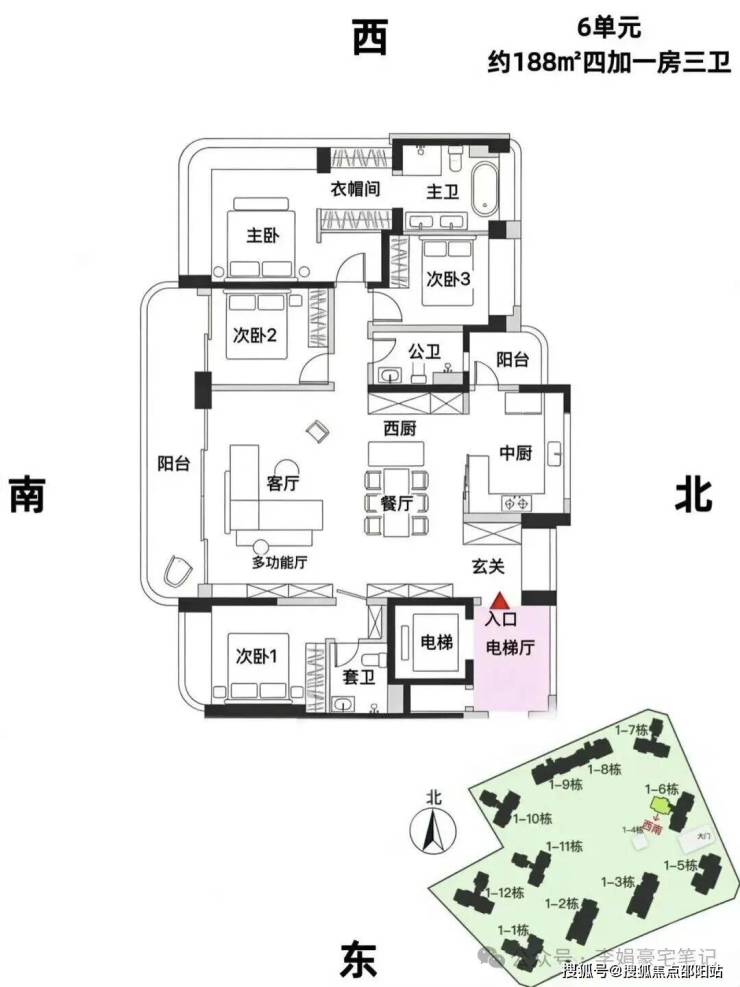 户型二:约188平 4+1房3卫