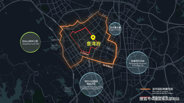 龙华国际商圈位于深圳市都市核心区、中部发展轴,横跨龙华、民治、大浪三个街道,南部紧邻深圳北站国际商务片区,东北部为龙华富士康和坂雪岗科技城,西部为阳台山森林公园,交通便利,地理位置优越。
