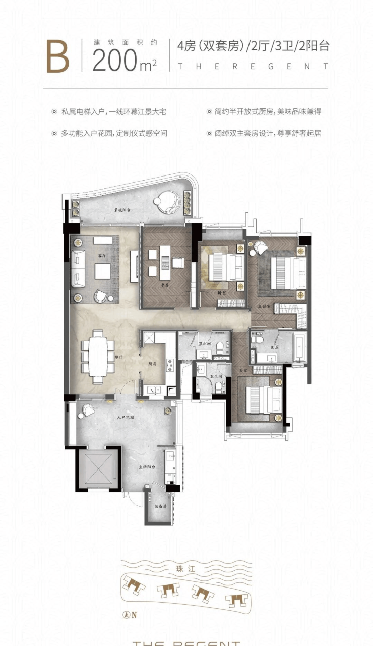 产品方面:全新二期『天启』组团面积约140-270㎡环幕临江大平层,永恒江景第一排,眺望小蛮腰,享500米宽阔无遮挡江景视野,并邀请三大全球知名顶尖设计大师倾力打造,12大国际品牌交标配置,专梯专户四房双套房设计,世界灵感前沿作品礼献广州!