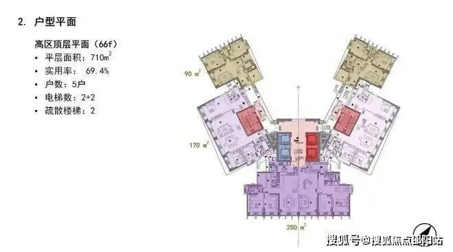每一层采用分区设计,分为东翼、西翼和中区,设计非常私密尊贵;