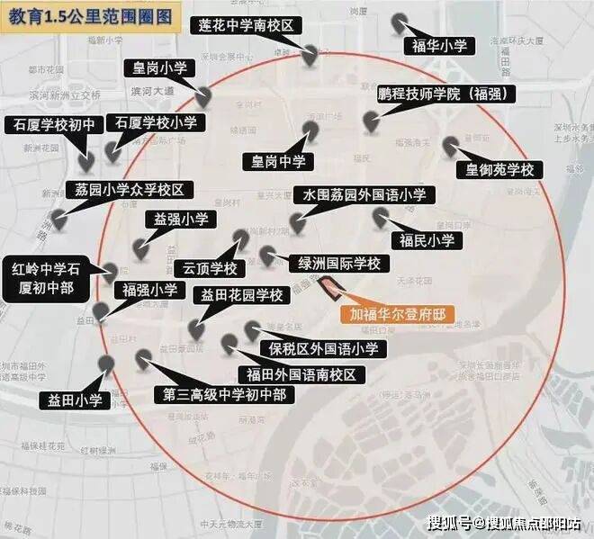 教育方面:项目周边教育资源非常丰富,据不完全统计项目1.5公里范围内学校不少于17所,其中像福田保税区外国语学校、福田外国语学校南校区、荔园外国语小学水围小学这种知名度和口碑度较高的学校距离项目也都非常近。