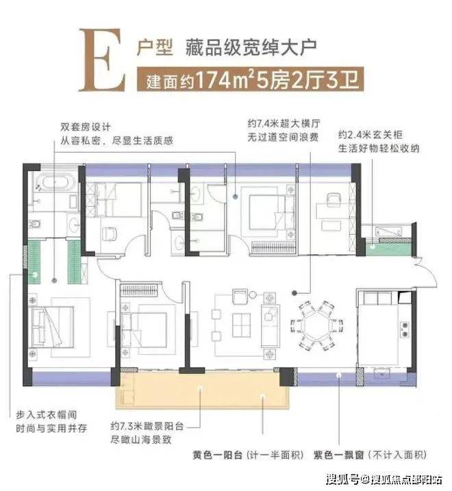 云山海户型设计的非常不错,按照常规备案的公式不计赠送,使用面积能到约75%以上,如果计算上飘窗,阳台等赠送的面积,实际使用率会在85%以上。