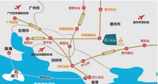 两轻轨 距莞惠轻轨惠环站约1.5公里,莞惠城际(已通车)与深惠城际(规划中)接驳,半小时深莞惠通勤。