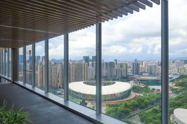 最具标志性的空中会所设计采用悬挑式结构,4米的出挑尺度中1.5米的超薄飘片以仅20公分的极致厚度实现,配合底层架空处理,轻盈的"悬浮"于城市上空。将宝安中心区美景尽收眼底,更以雕塑般的艺术形态成为整座塔楼的点睛之笔。
