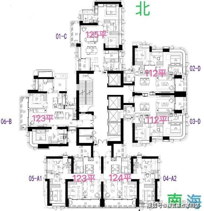 06 B户型——建面约122-124㎡3+1多功能空间:双龙抱珠户型,次卧带阳台。西北朝向看绿地公园及花园。虽然是125㎡户型中总价最低的,但仍保持高标准的空间尺度和配置,适合注重实用性的改善家庭,属于性价比之王。