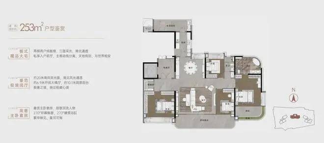 保利华创都荟天珺项目的建面约253平户型,无疑将豪宅的奢阔与尊贵感展现得淋漓尽致。作为项目的楼王,它采用了2T2专梯专户设计,确保了住户的私密性和尊贵体验。南北通透的布局和低密板楼的设计,不仅保证了室内的通风采光,更彰显出豪宅的高贵品质。
