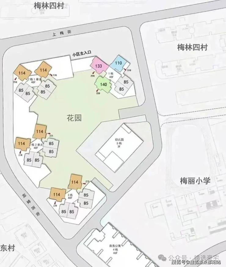 规模:总占地面积约1.98万㎡,总建筑面积约22.9万㎡,涵盖住宅、商务公寓、商业及幼儿园,总户数约2481户。