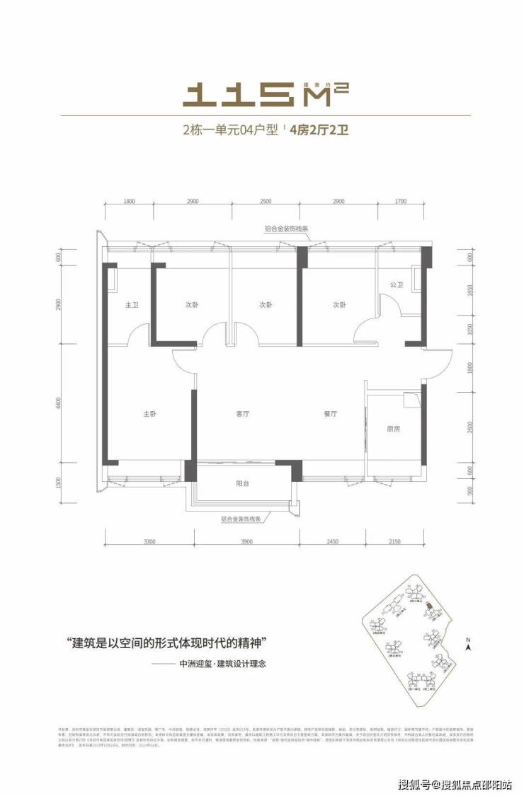 ▲中洲迎玺花园二期:2栋二单元115㎡四房户型图▲