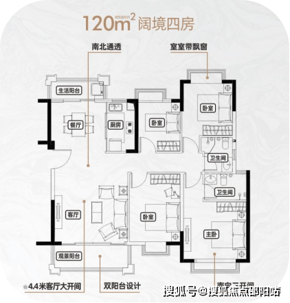 4.4米超阔开间客厅/景观阳台
