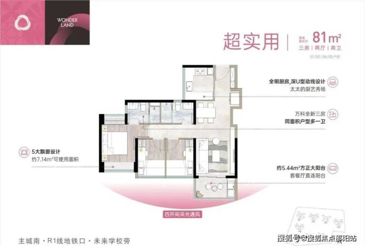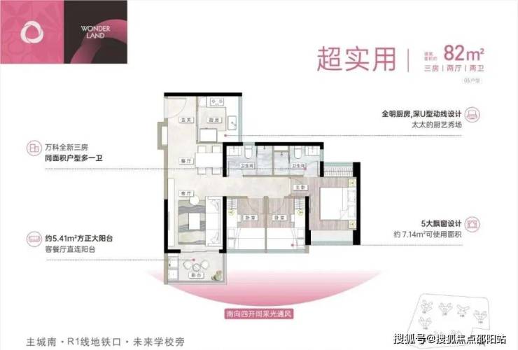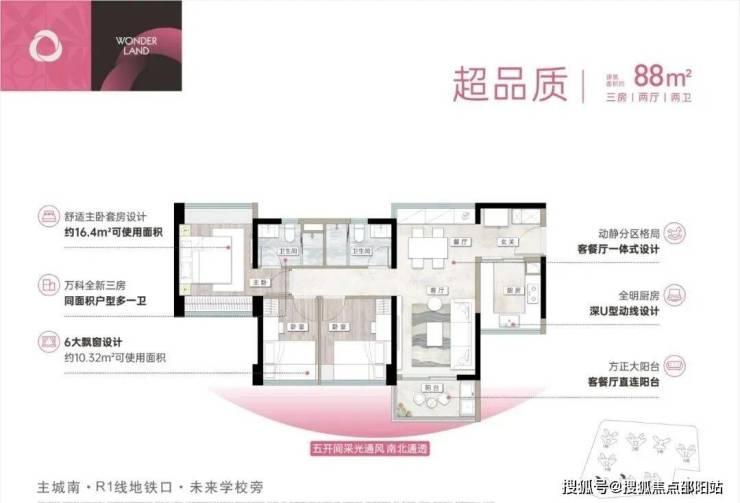 户型亮点:万科全新三房,同面积户型多一卫;采光通风俱佳
