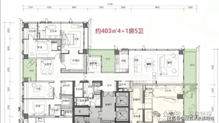 · 1050㎡顶奢大平层:位于顶楼的Penthouse,堪称深圳住宅的巅峰之作,堪比世界级豪宅。