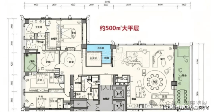 顶楼:约1050㎡整层大平层(仅3套)。
