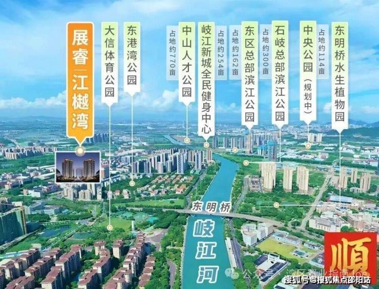 2. 滨江盛境,生态宜居:坐落于岐江河畔北岸,私享2.5公里滨江长廊,是观赏烟花、赛龙舟等中山盛事的绝佳观景地。东港湾公园、大信体育公园、东明桥水生植物园举步即达,岐江新城千亩公园群环绕,鲜氧浸润日常,漫享滨江慢生活。