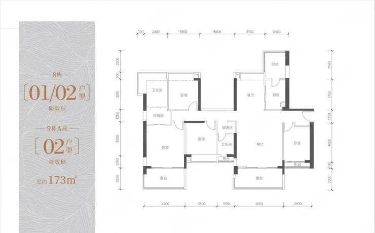约173平4房2厅2卫(8栋01-02偶数层,9栋A-02奇数层)
