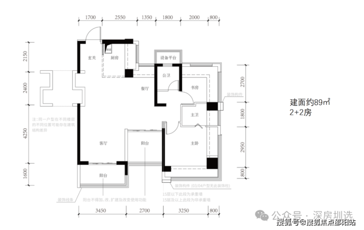 【产品革新】全生命周期户型,新规产品高使用率深圳建筑新规首发项目之一,超高综合实用率创新型成长户型,适应家庭不同阶段的需求变化,拔墙设柱设计、分户S墙、创新LDKC内外亲子双区等