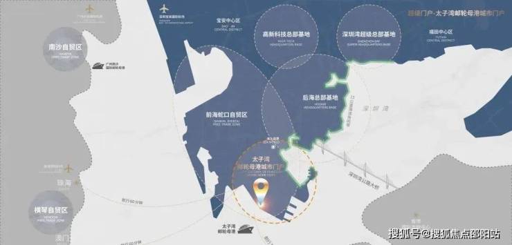 太子湾,是招商蛇口保留的最优地块之一,斥资3000亿打造,联袂全球大师,以170万㎡筑就航母级国际滨海城,一如悉尼地标Darling Harbour,代言城市繁华名片。整个片区规划了70万m²的高端商务集群,其中一栋382米超甲级写字楼将成为新地标。片区还规划有超五星级酒店、旗舰商业、多所国际学校、国际医院等,几乎包含一座城市的所有功能。