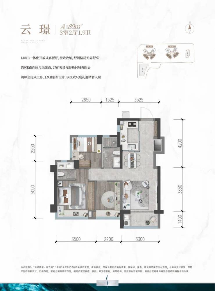 高质产品:建面约80-113㎡精质美宅,创新户型设计,片区内唯一80平内1.9卫创新设计;片区内唯一90平内南北通透户型设计;113平户型豪华主卧三面飘窗,270°全景环幕视野,实际使用率达86-90%,更大居住空间,更高舒适度;