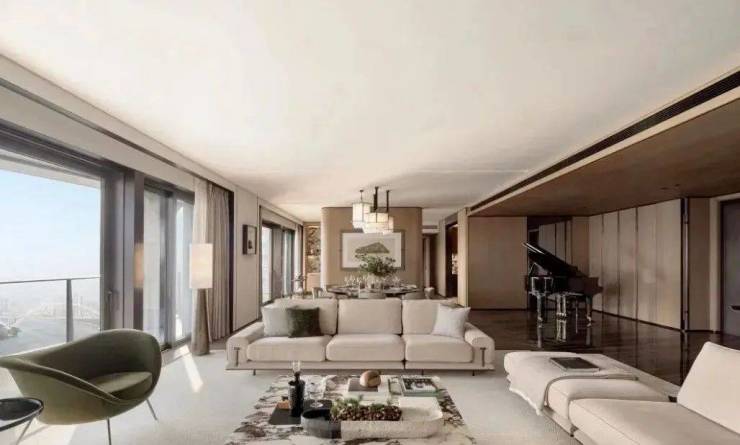 江幕大平层中,尽量留白,让视觉无限开阔,内外通透,也借此更为凸显品质奢宅的品质所选。