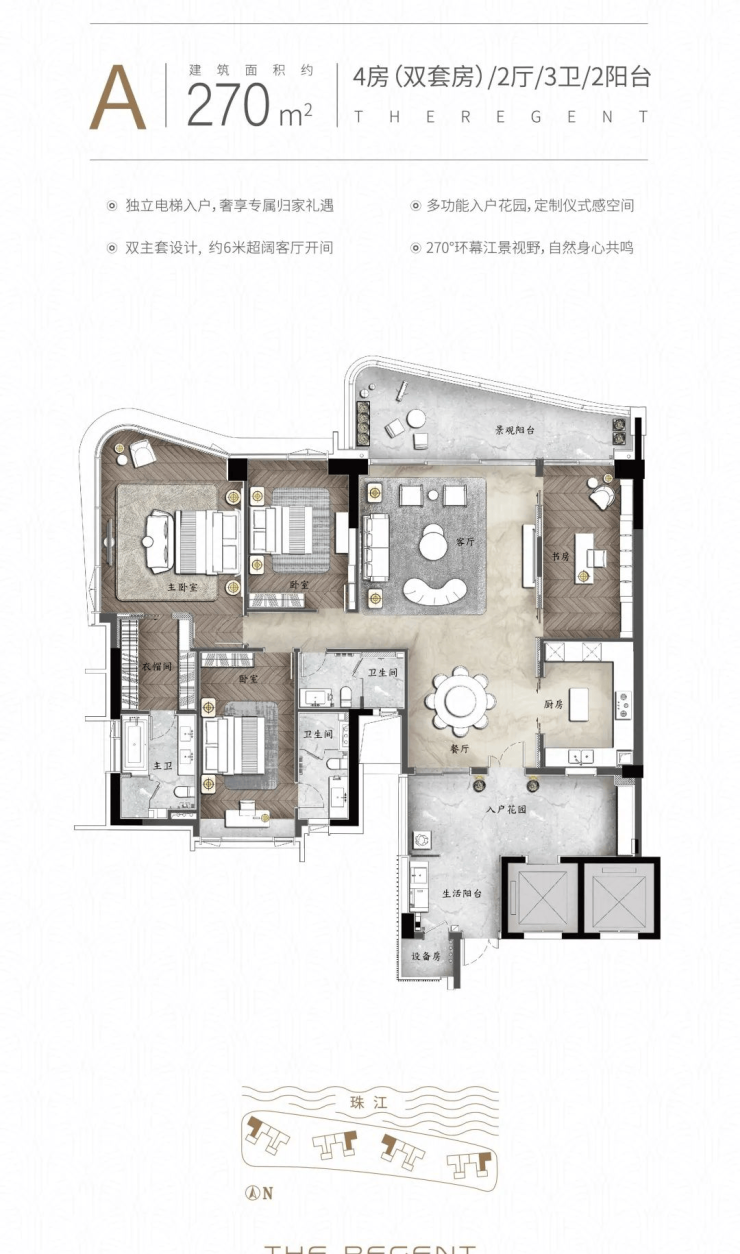 户型面积:140㎡-480㎡四房-六房双主套