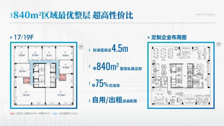 整层主权:整层约840㎡私属产权,约75%超高使用率
