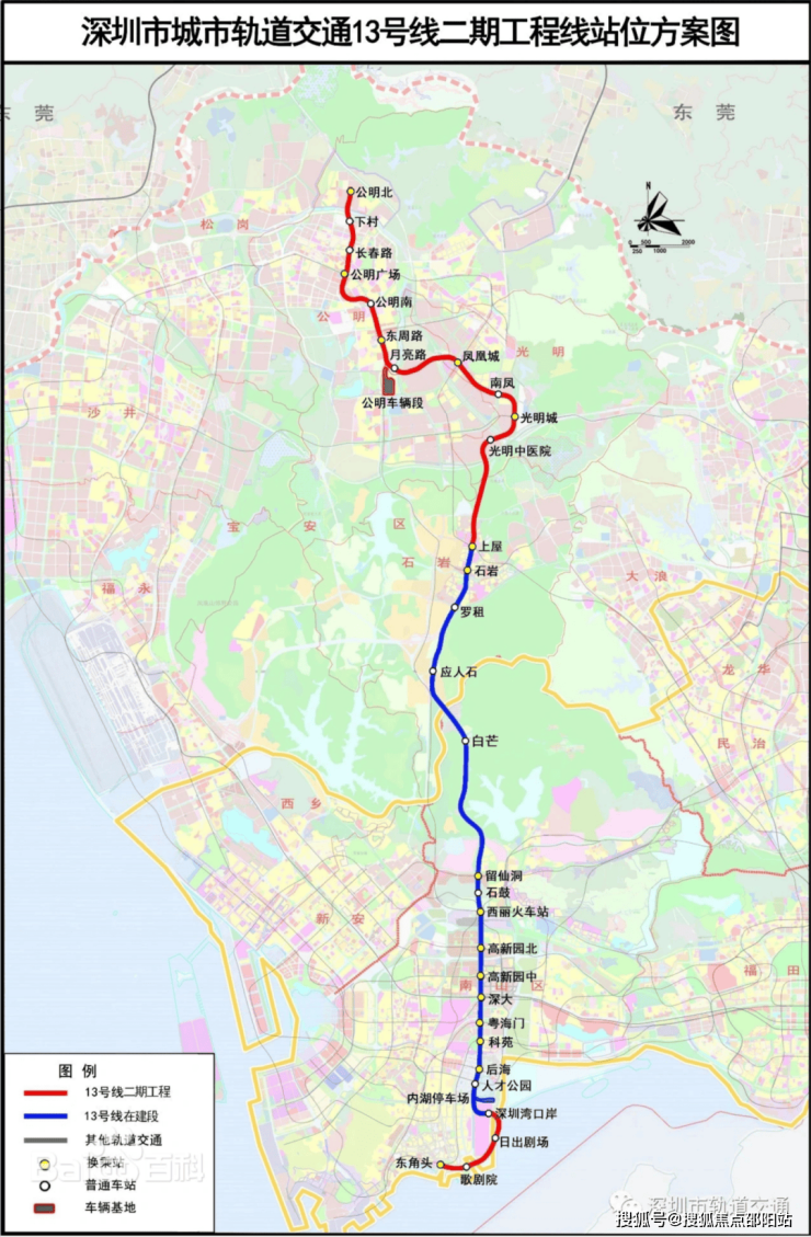 ①13号线起于东角头站,终于公明北站,纵贯光明、宝安、南山,线路开通后约30分钟可抵达南山核心区,约45分钟可达深圳湾口岸,以高新技术人才为主要客流,被称为高新技术人才专线