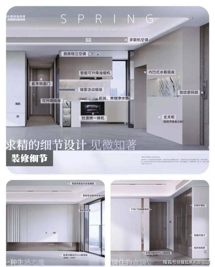项目为精装交付,搭配智能家居系统,厨房卫浴配置虽未完全公开品牌,但整体完成度和颜值在前海区域内处于中上水准,未来交付后生活质感预期较高。