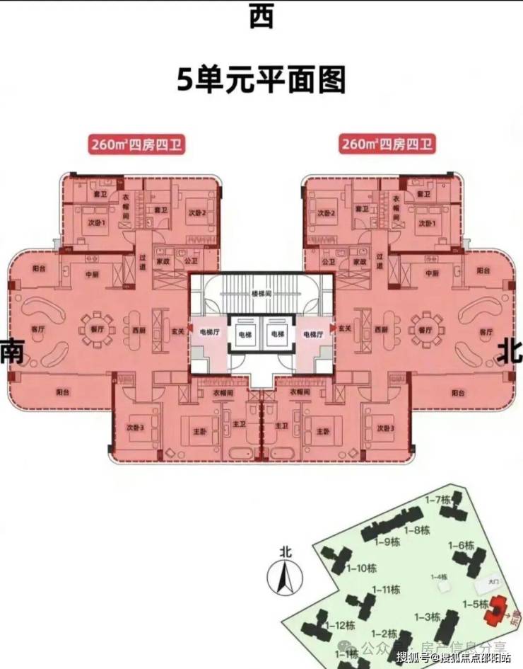 5单元:21层,2梯2户, 建面约260㎡,还有1套500㎡顶复