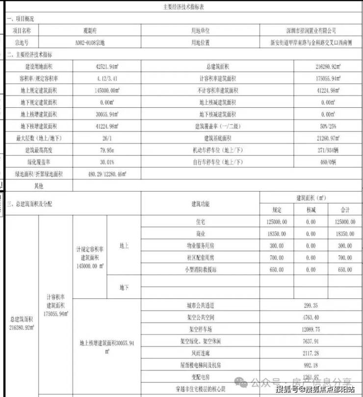 11月18日,深圳规自局披露了观潮府项目的《建设工程规划许可证》及总平面图。