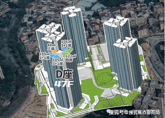 比如105平、122平、143平4开间朝南,其中朝南房间占比高达90%。