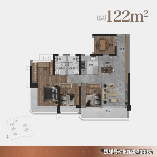 122㎡户型,约6.6M南向景观阳台 | 270°环幕瞰景主卧|多元化功能阳台