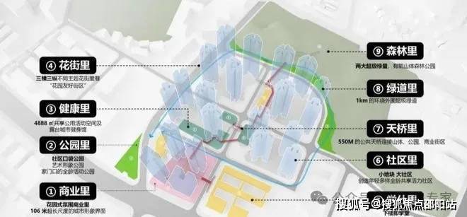 整个项目以双慢行道、两处公园、三重休闲、五大花街景轴打造超级绿量慢行道系统赋氧公园大城。并以“一轴两公园三中心”概念,匠筑约500m大城的立体城市连廊系统,无缝串联全龄教育、精致商业、品质人居、活力运动、公园休闲等功能板块。