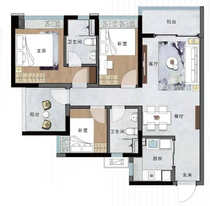 ②98㎡3+1室2厅2卫(南朝向)『多变空间』3+1户型设计,超高空间扩容和多变性,卧室全飘窗设计,悦享舒适人居 『布局合理』户型方正适用,动静分区互不干扰 『干湿分离』主卧套房设计,干湿分离,洁净分区