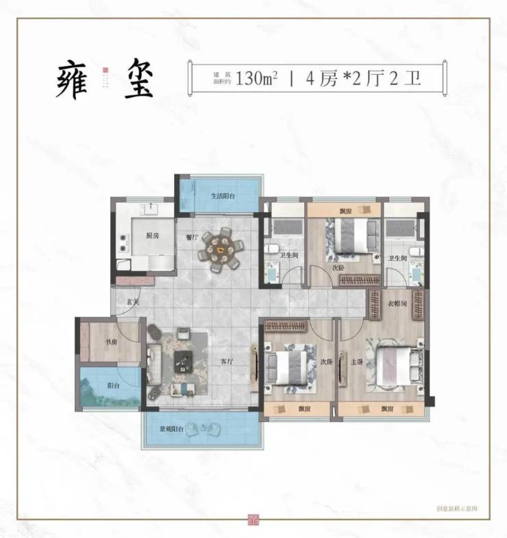【雍玺 | 建筑面积约130㎡ ,4房2厅2卫】