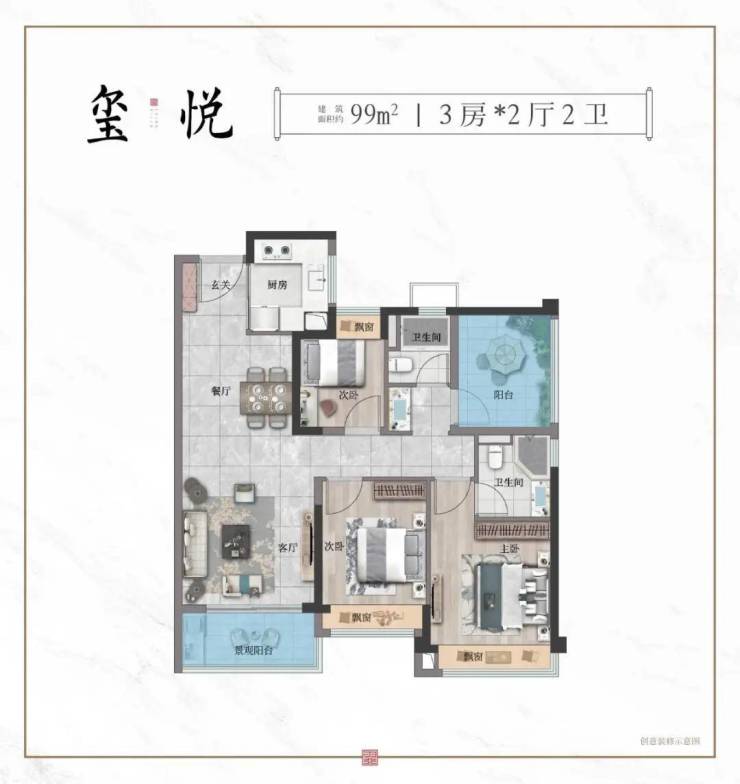 【玺悦 | 建筑面积约99㎡ 3房2厅2卫】