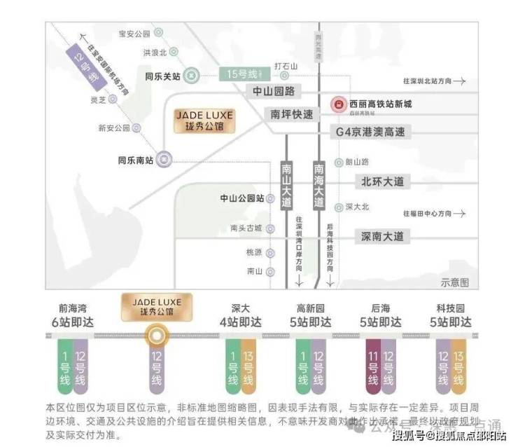 地处南山与宝安交界处,紧邻地铁12号线(在建)同乐南站,步行距离约500米,项目坐拥南山核心区位,毗邻科技园、前海自贸区及留仙洞总部基地,5站可达高新园,辐射粤港澳大湾区核心产业带,具备承接高端人才居住需求的潜力。