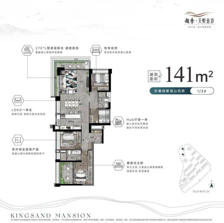 超高层景观:金沙洲第一超高层住宅,270°超奢阔阳台,尽享湖景、山景和园林美景。