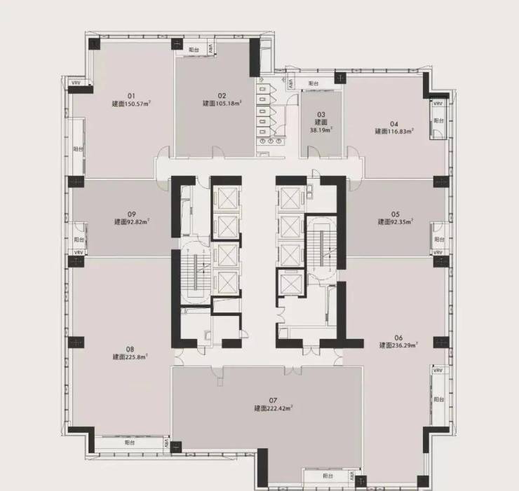 T1标准层面积:约1300平