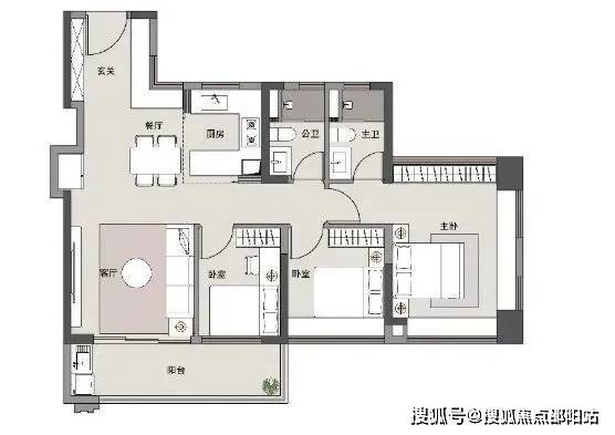 建面85平三房,四开间朝南,宽景阳台链接次卧和客厅,主卧更是三面采光,其中一面飘窗可做衣柜。