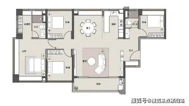 建面123平四房,大方厅+开放式厨房整体空间感非常强,三采光面,主卧还带大衣帽间。