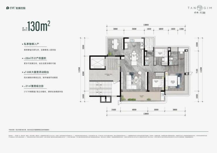 两项新规,让住宅产品的实用率靠近100%成为可能。在此报建利好上,保利天珺户型展示了以下共同特点: