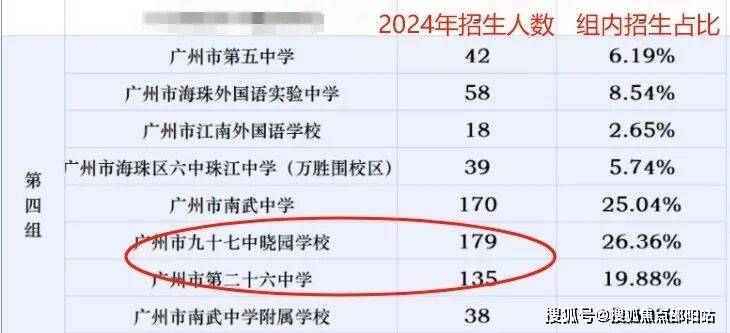 2023年以前,这个分组南武大头,4成学生可以进去,但是到2024年,第四组一共摇679个学位,相对比较差的26中、97中占比提高,一共招生314人,过半的学生进去了这两所学校。