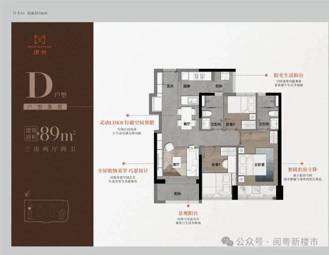 89平方D户型(三房两厅两卫)