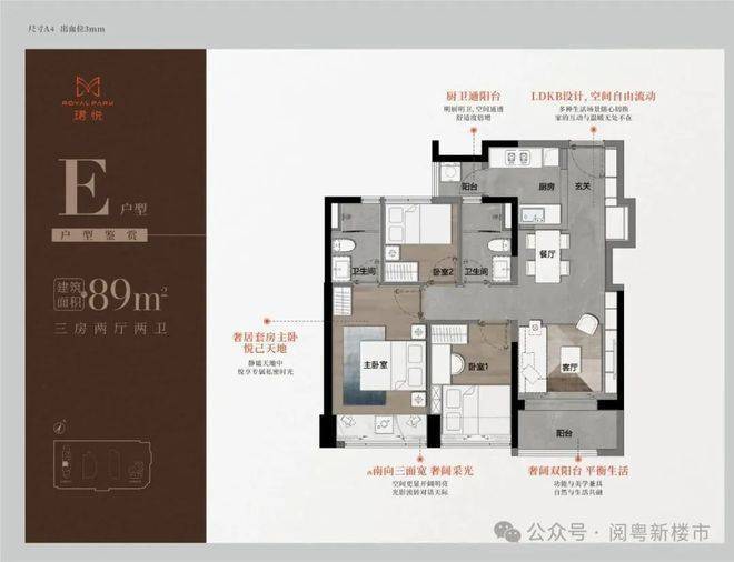 89平方E户型(三房两厅两卫)