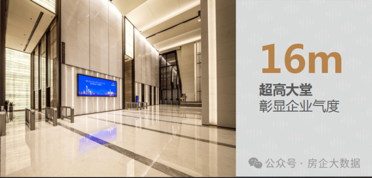 【配置】- 16米超高大堂、4.5米阔境层高、2.6米超大幅宽玻璃幕墙、13部最快7米/秒奥的斯电梯、VIP专属直达电梯、VIP总裁盥洗室