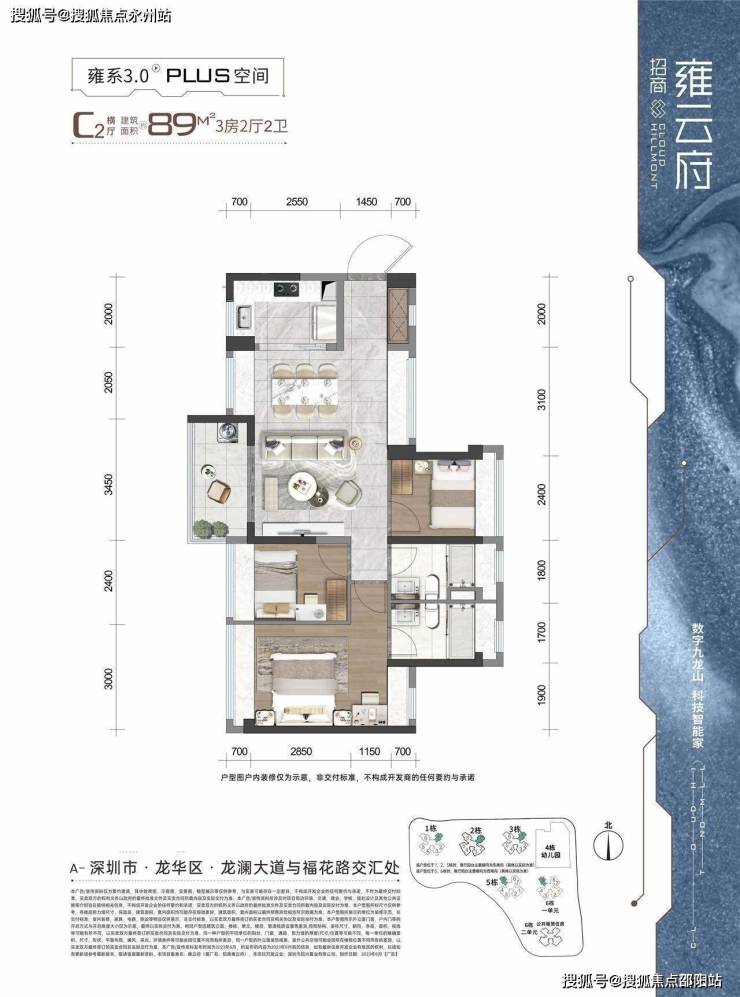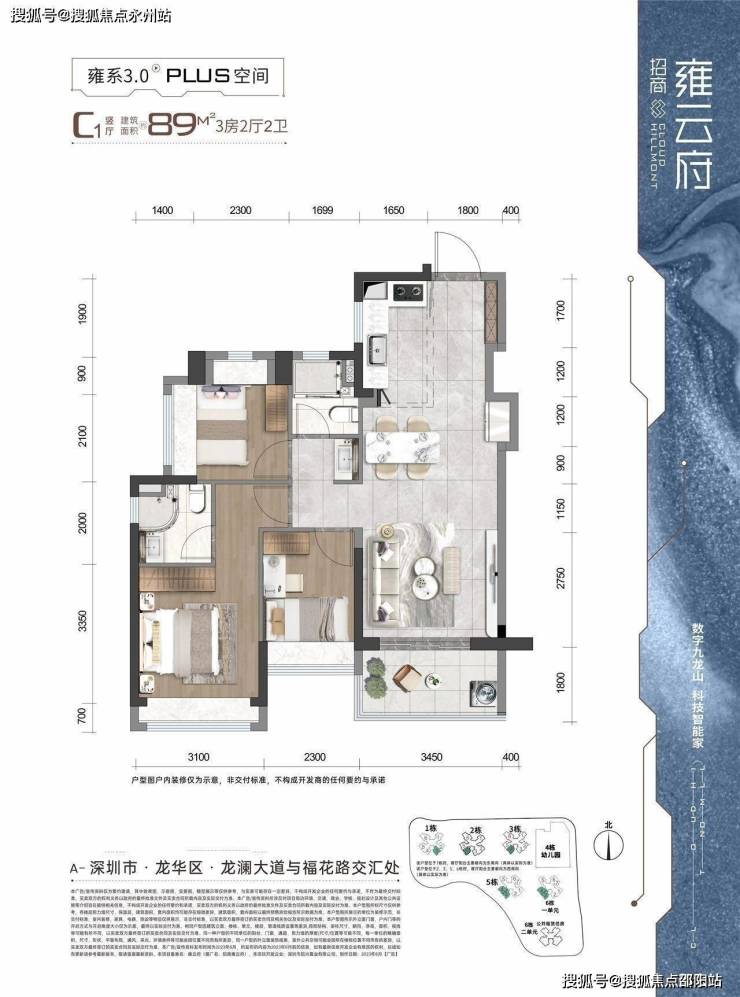 招商雍云府华为龙华新基地旁边,面积段约67-109㎡ 2-4房,可售商品房925套,单价4.35万,开盘94折,上车门槛超低,2房折扣才300万出头,3房折后约350万。