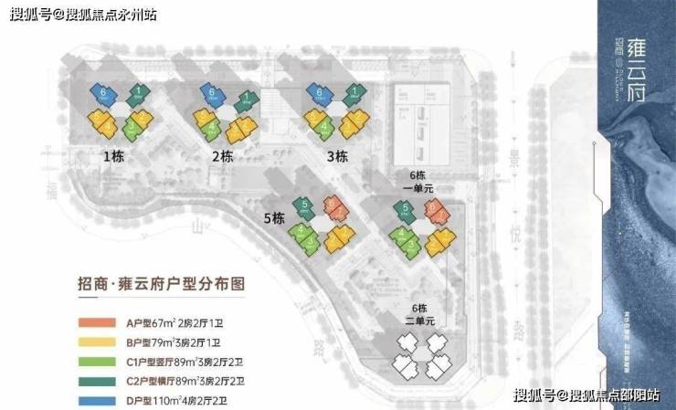 项目占地面积约2.7万㎡,建筑面积9.5万㎡,容积率3.59,总共由6栋住宅组成。其中1栋商品房31F,2/3/5栋商品房30F,6栋一单元商品房29F,6栋二单元公共租赁住房22F,4栋是9班幼儿园,总规划1049户(其中商品房927户,公共租赁住房122户)。深圳招商雍云府开发商售楼处电话:400-166-9557售楼中心。