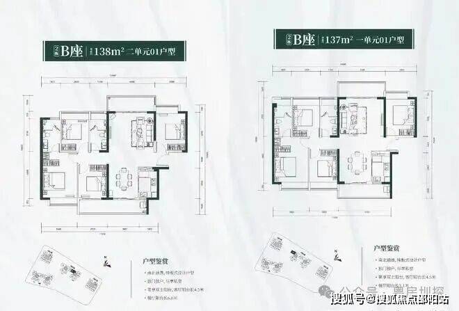 137-138㎡四房两厅两卫(2栋B座一单元01/04户型、二单元01户型)南北通透双阳台:南阳台面宽4米,北阳台(生活阳台)进深1.5米,形成穿堂风,通风效率提升40%,尤其适合深圳潮湿气候。客厅与餐厅一体化设计,总面积约30㎡,可容纳8人圆桌,满足家庭聚会需求。主卧奢华配置:开间3.4米,带步入式衣帽间(约5㎡)和独立卫浴(双台盆+浴缸),飘窗进深0.6米可改造为阅读角,私密性与舒适性兼备。全龄段空间规划:4个卧室面积均衡(12-18㎡),可灵活打造儿童房、书房、老人房,北向次卧(约8㎡)建议定制榻榻米+书桌组合,提升空间利用率。